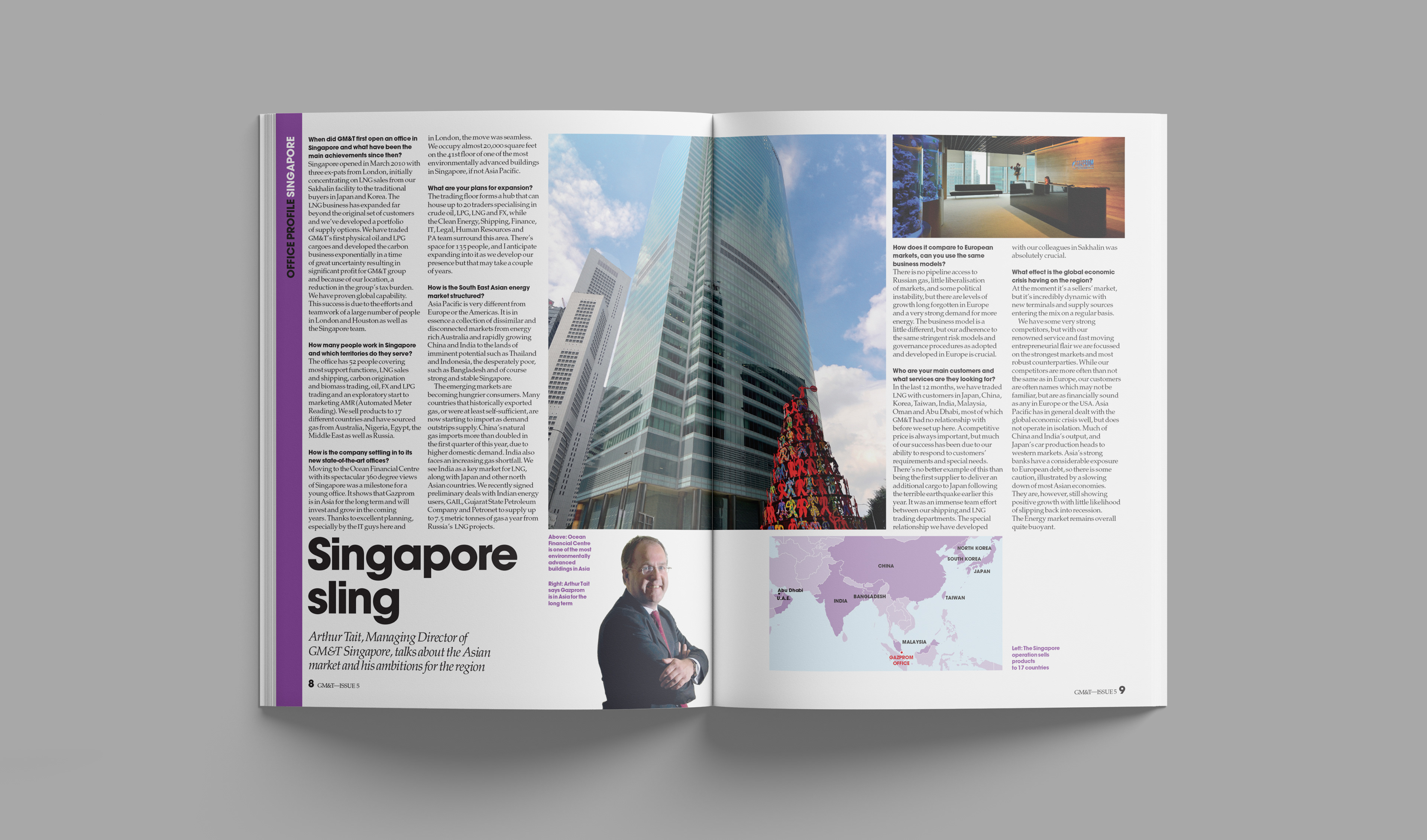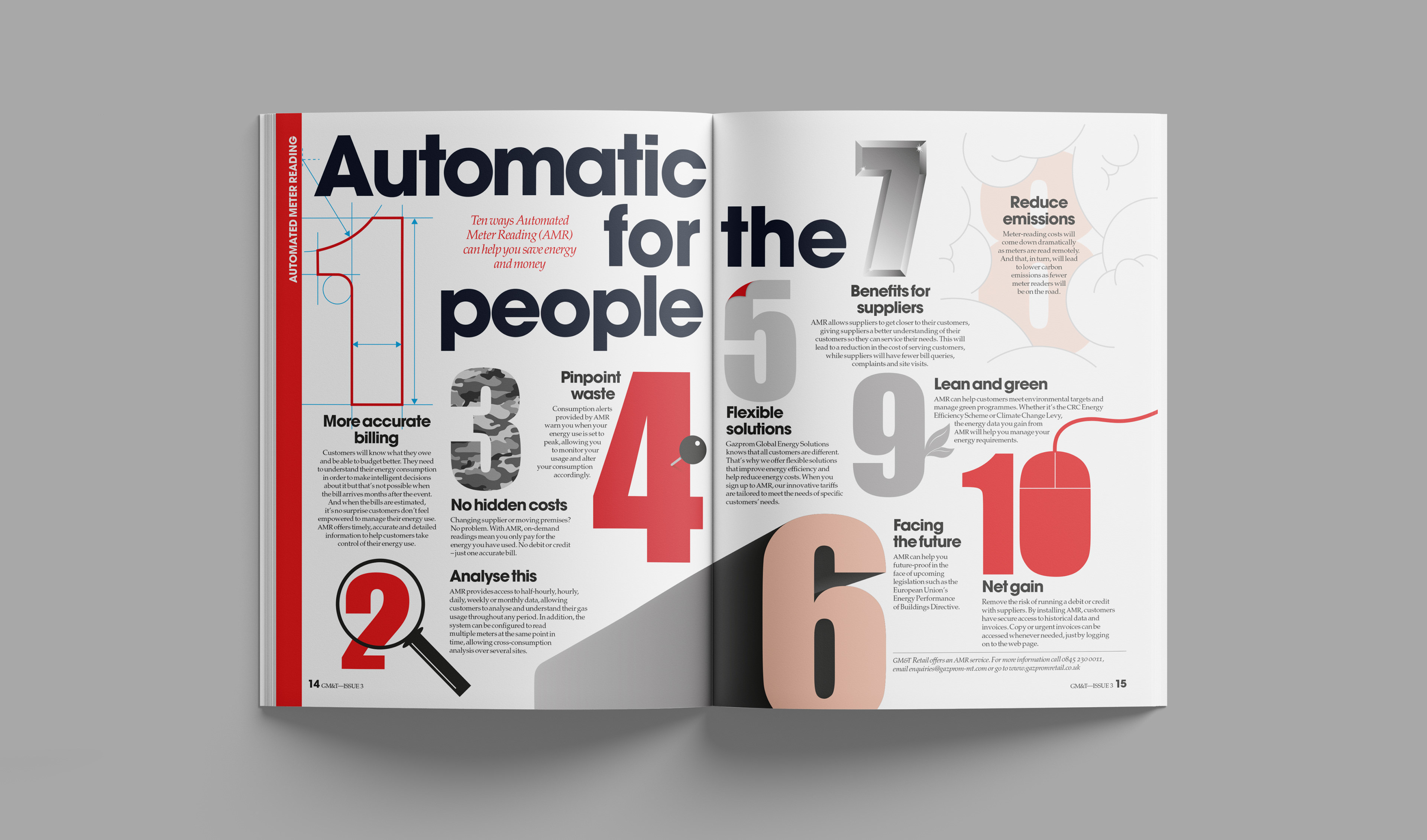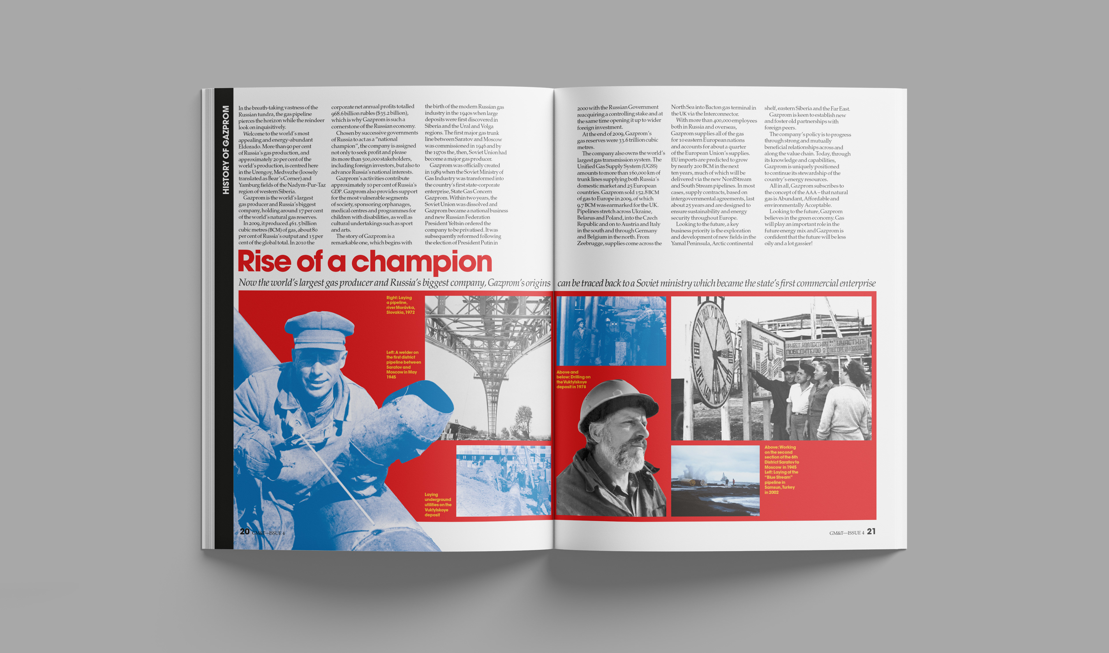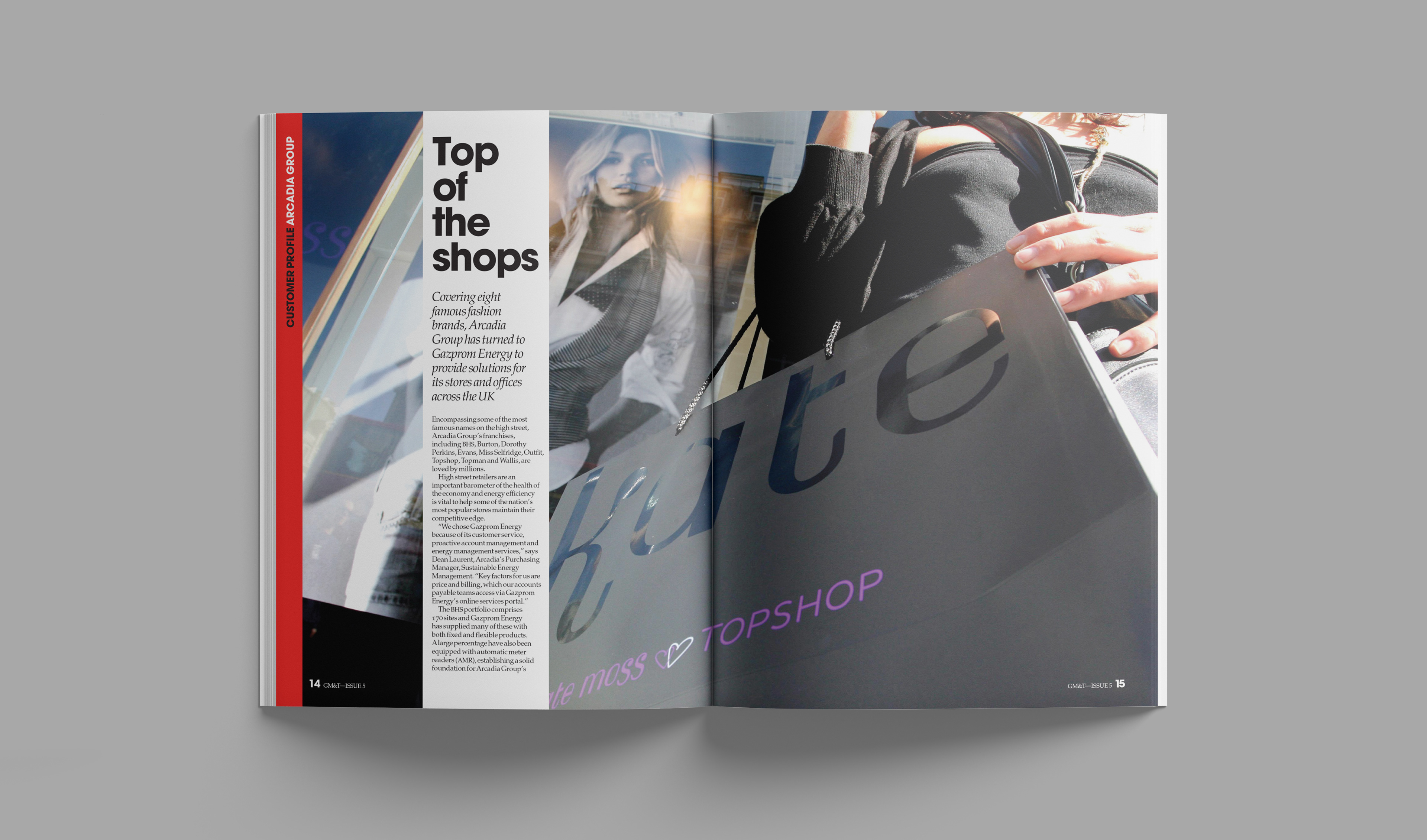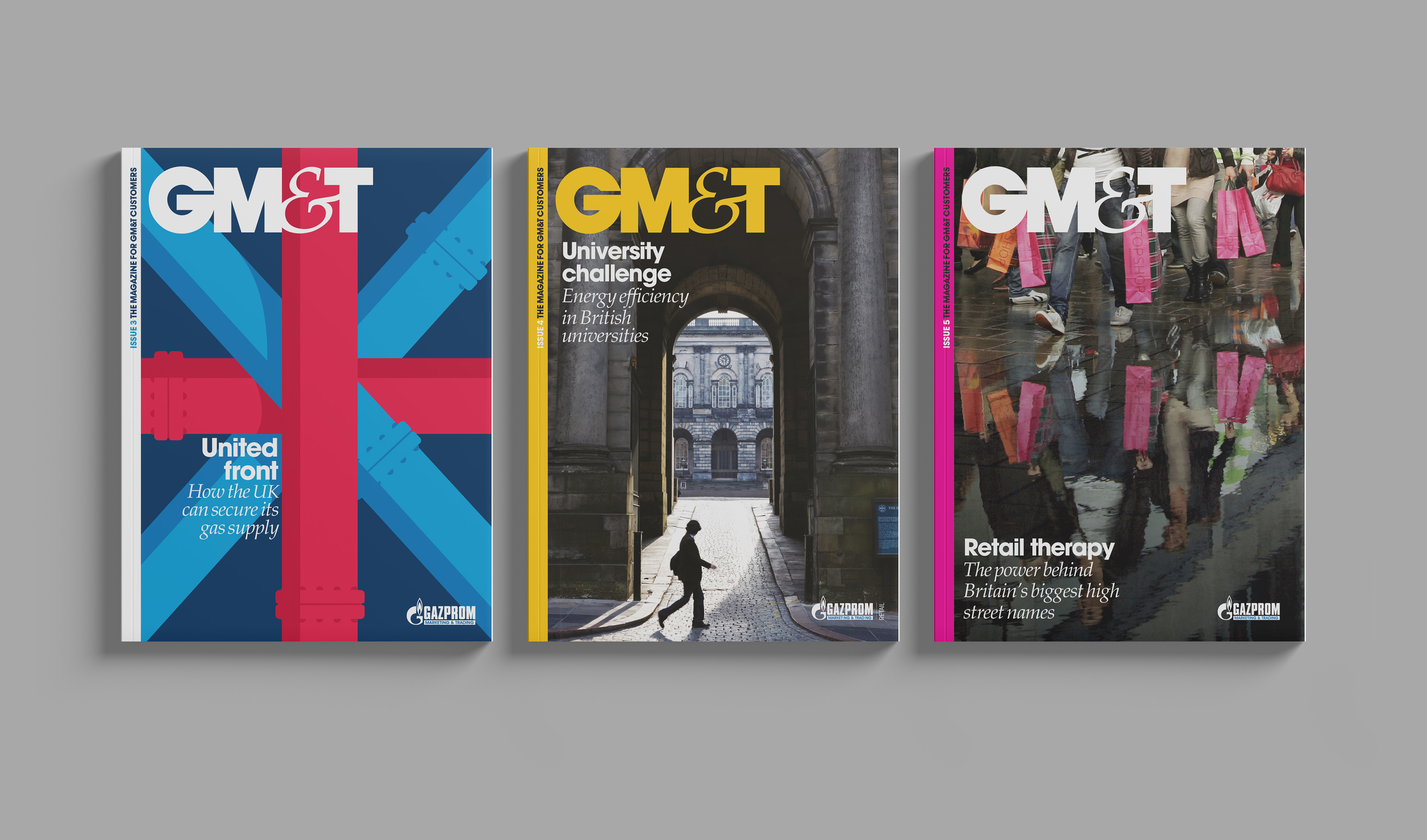 For Gazprom UK, the marketing and trading business, GM&T was created as a customer magazine to help develop their public profile in the UK. Used also as a showcase by the marketing department, the publication featured sector case studies, expert think pieces and people profiles. My role involved concept, design and art direction.